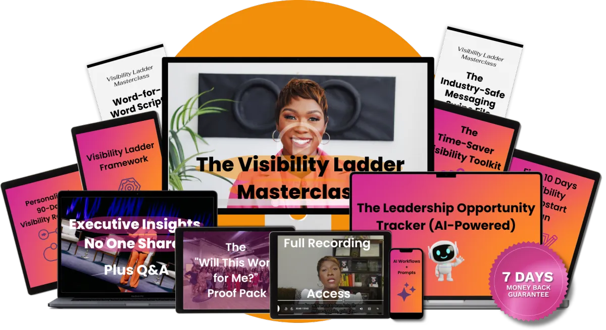 5 real case studies from women just like you across tech, finance, healthcare, consulting, and operations. See where they were stuck, what visibility shift they made, and what happened after. Real women. Real industries. Real results. You'll see yourself in their stories and know: "If it worked for her, it can work for me."